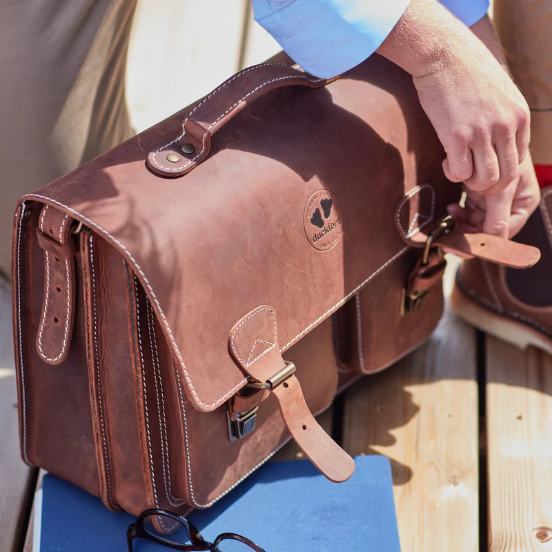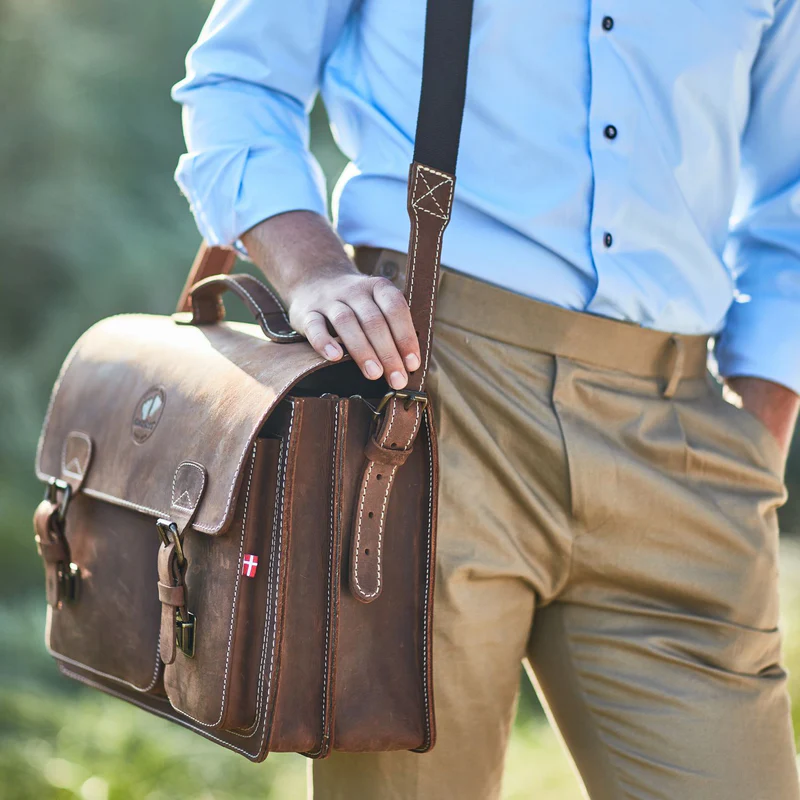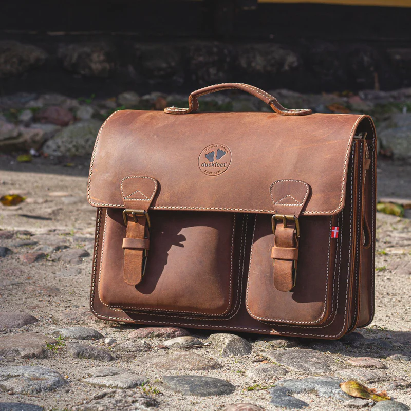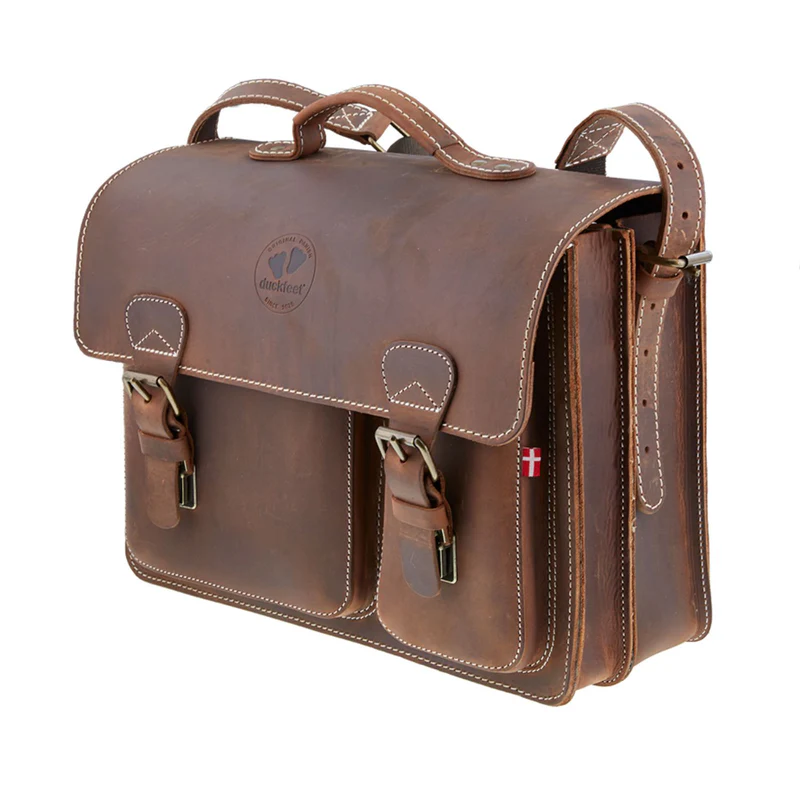 Le sac Hjalte de Duckfeet est un modèle classique et spacieux, conçu pour offrir un maximum de rangement. Fabriqué à la main en cuir Terracare couleur cacao, un cuir haut de gamme et résistant, ce sac est doté de deux grandes poches avant avec fermetures à pression pour un accès facile. À l’intérieur, vous trouverez quatre compartiments séparés, dont une poche zippée pour plus de sécurité et des poches élastiques pour les petits objets. Ce sac est muni d’une poignée supérieure et d’une bandoulière ajustable pour un porté confortable. Le sac Hjalte arbore les détails distinctifs traditionnels de Duckfeet, tels que les surpiqûres contrastées, les finitions métalliques, l’étiquette drapeau danois et le logo estampillé.